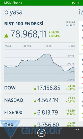 MSN Money” Windows 8.1 planşetlerinde we kompýuterlerinde öňünden gurlan MSN hyzmatlarynyň biridir we maliýe habarlaryny we maglumatlary iň takyk görnüşde alyp bolýan maliýe programmasydyr.